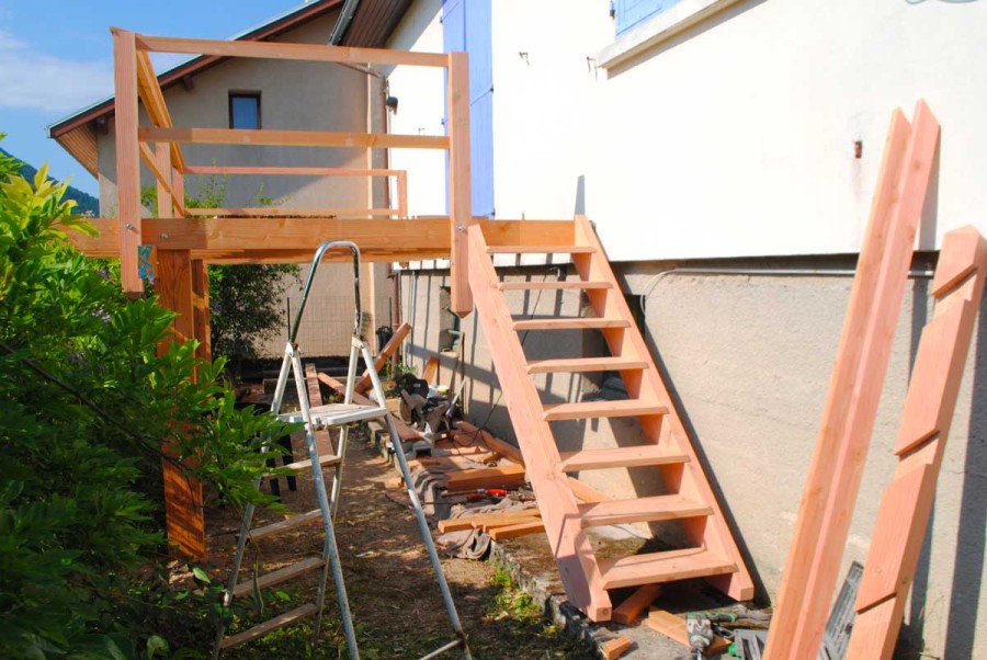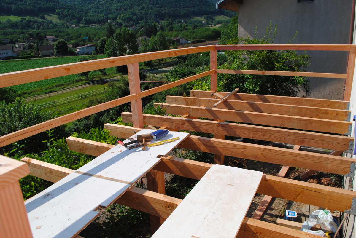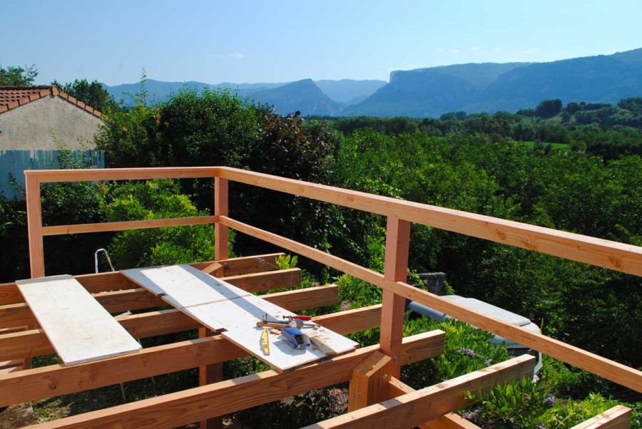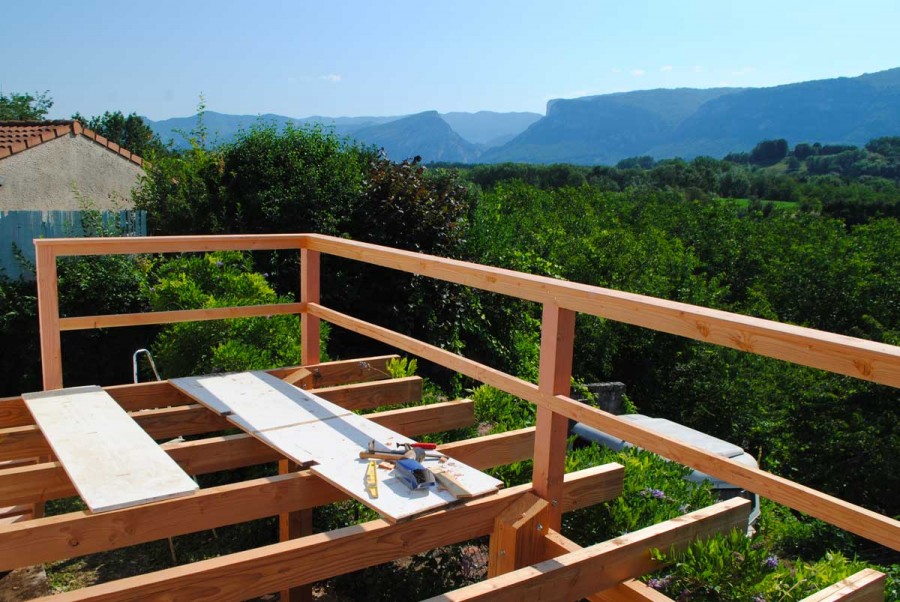 Création d'un balcon-terrasse au tour d'un pavillon, pour admirer le Vercors.