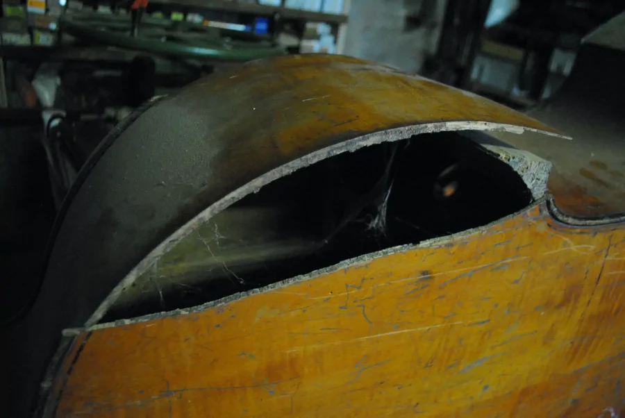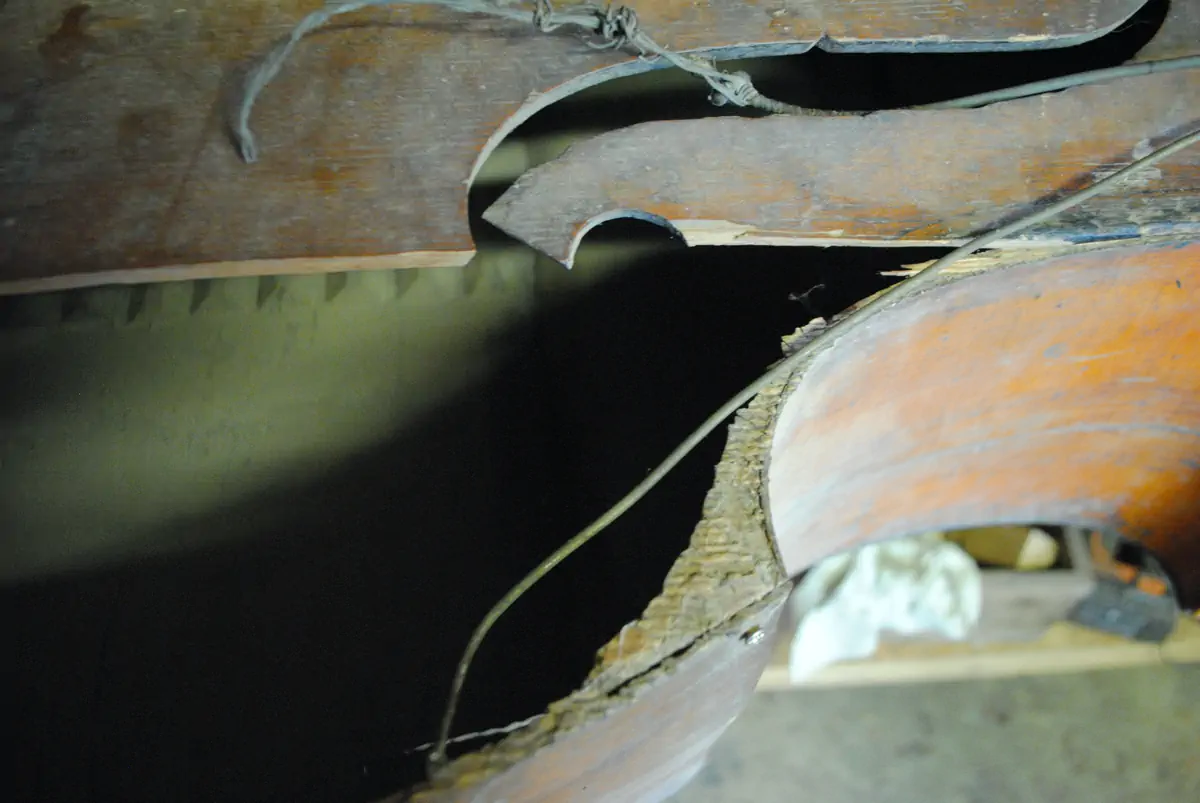 Décollage de la barre d'harmonie pour reconstituer les parties abimées, puis remontage.