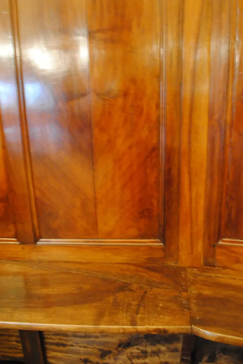 Reprise des vernis en tâchant de conserver l'ancien au maximum. Passage d'une gomme-laque au tampon sur l'ensemble.