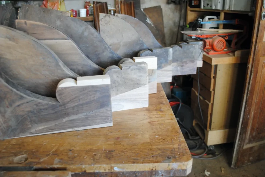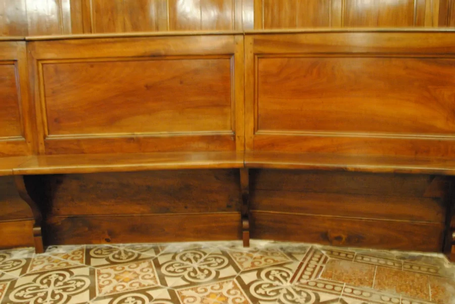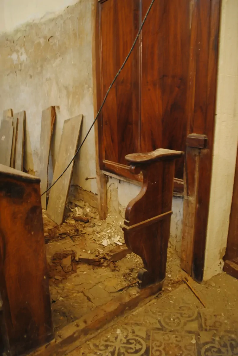 Remise en état des stalles de l'église. Chantier de plusieurs mois.